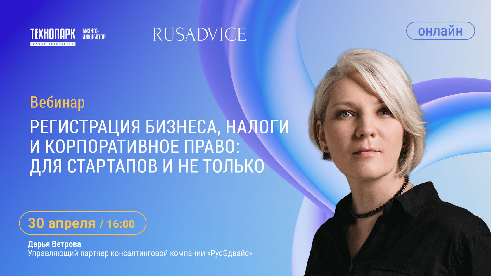 30.04.2025 Дарья выступала на площадке Технопарка с вебинаром на тему: «Регистрация бизнеса, налоги и корпоративное право - для стартапов и не только».